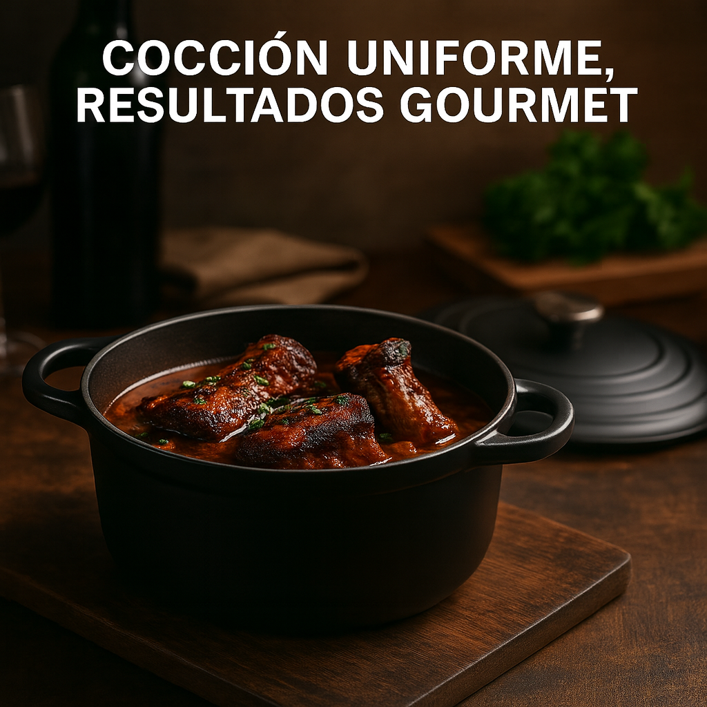 Su distribución uniforme del calor permite cocciones lentas, jugosas y sabrosas.
