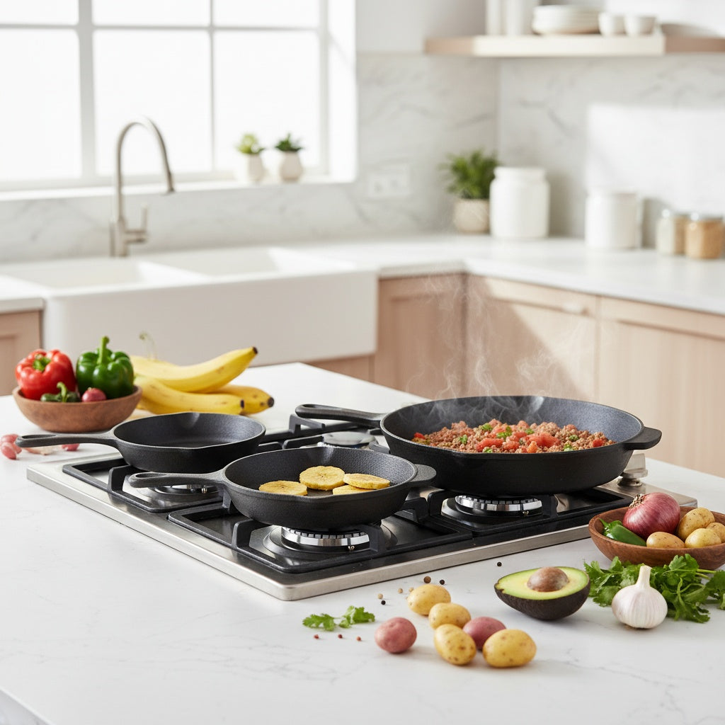Cocinan con mejor calor, realzan el sabor y duran toda la vida. Sin recubrimientos químicos ni teflón.